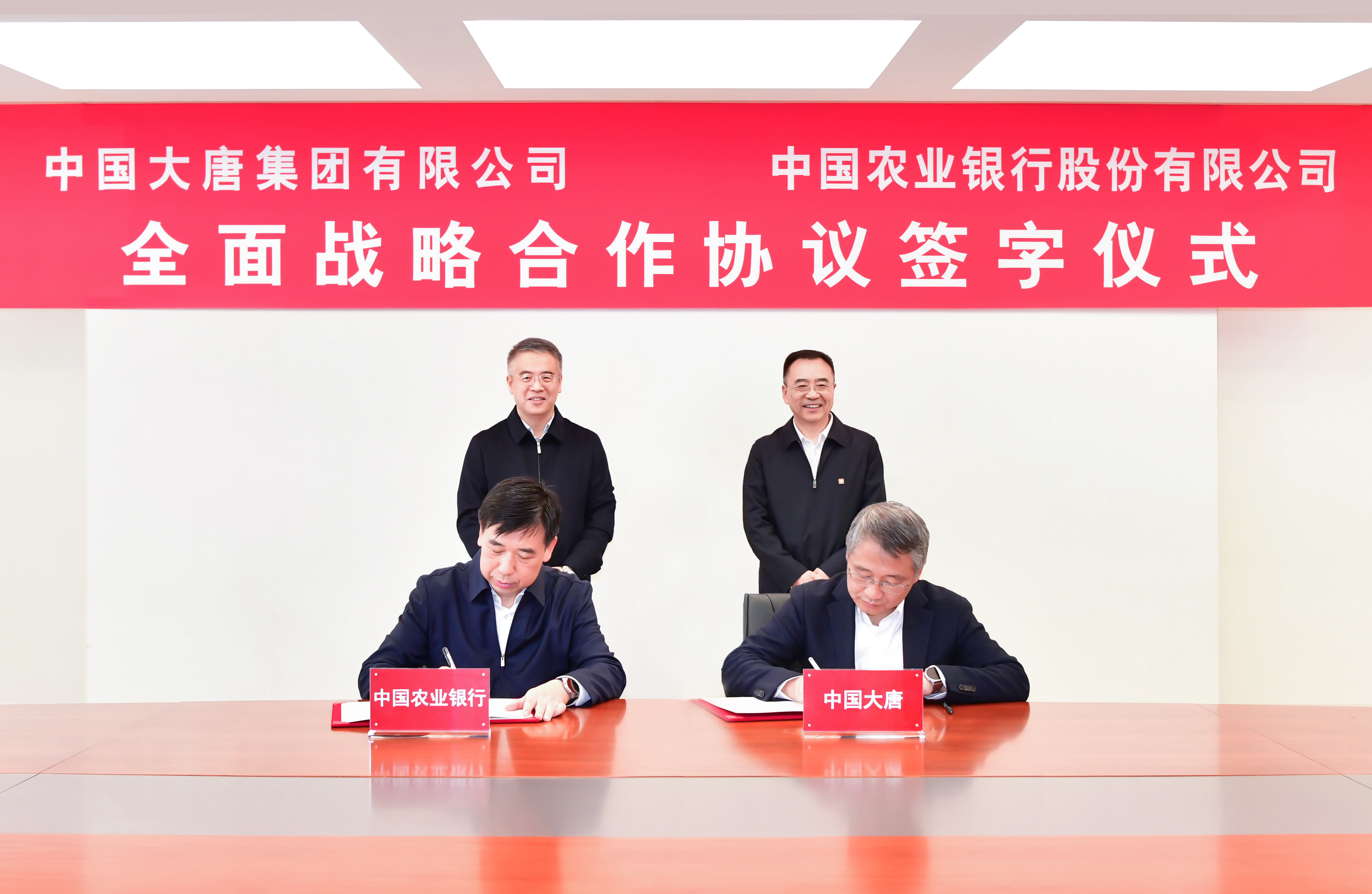 中国大唐党组成员、总会计师陶云鹏,中国农业银行党委委员、副行长刘洪代表双方签署全面战略合作协议。