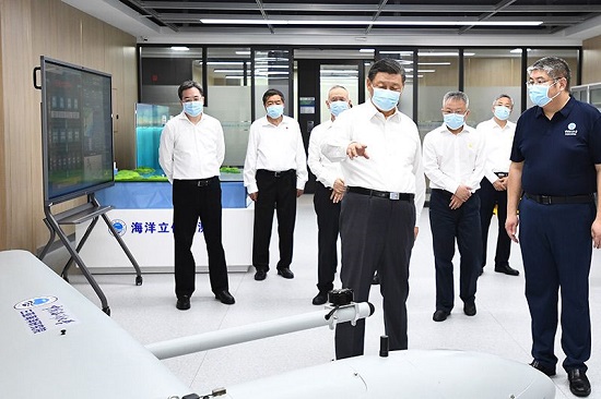 4月10日至13日,中共中央总书记、国家主席、中央军委主席习近平在海南考察。这是10日下午,习近平在中国海洋大学三亚海洋研究院考察。新华社记者 燕雁 摄