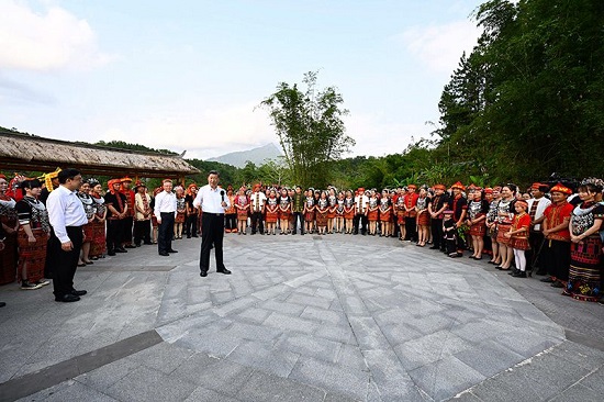 4月10日至13日,中共中央总书记、国家主席、中央军委主席习近平在海南考察。这是11日下午,习近平在五指山市水满乡毛纳村同村民们亲切交流。新华社记者 李学仁 摄