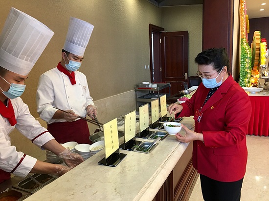 2020年10月25日下午,京西宾馆。参加党的十九届五中全会的吉林省长春市长山花园社区党委书记吴亚琴刚刚走进住地房间,书桌上“服务工作指南”上倡导“光盘行动”的提示便映入眼帘。
