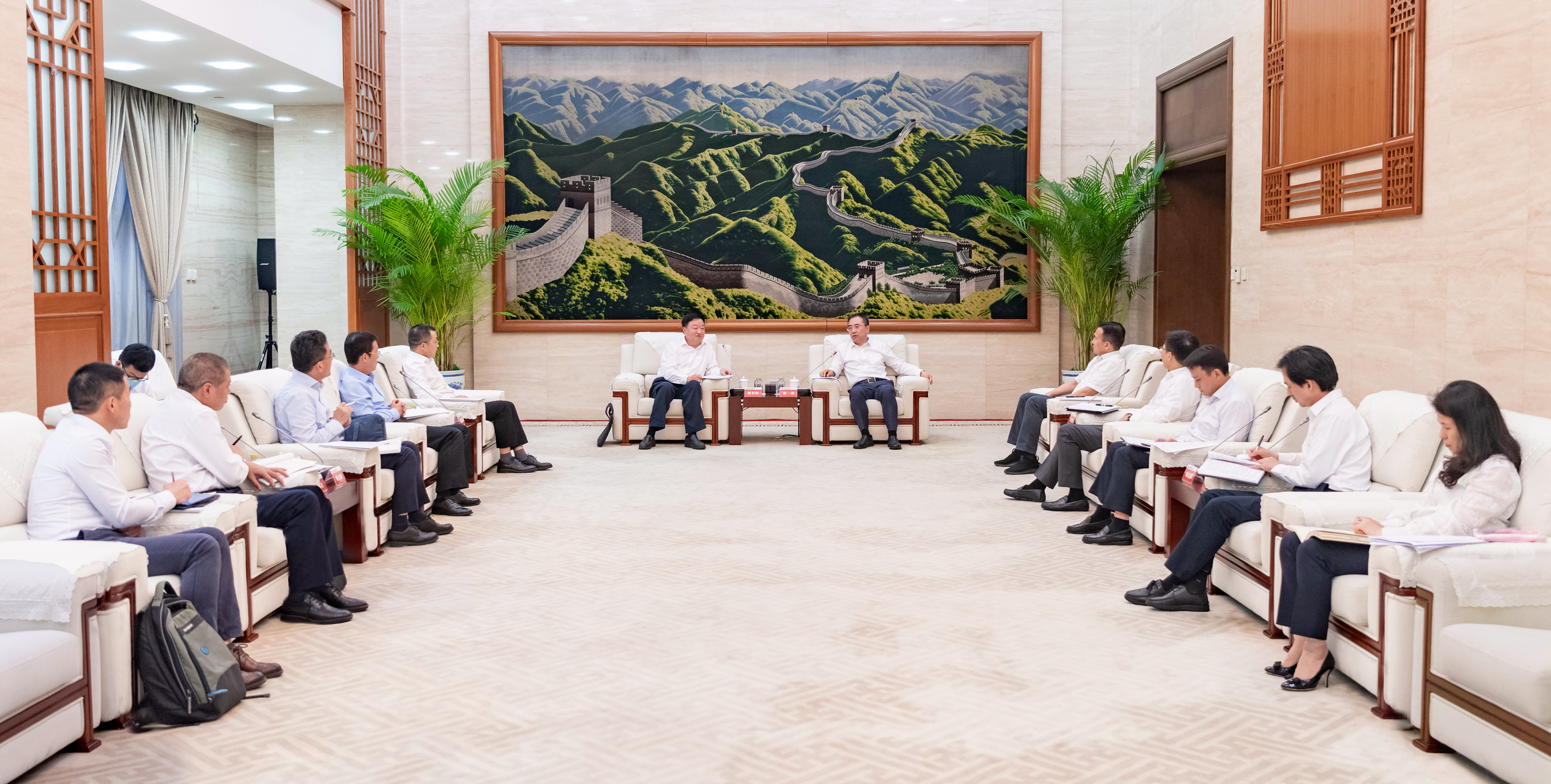 邹磊、刘明胜对杨长利、高立刚一行到访表示欢迎,感谢中广核集团一直以来对中国大唐的关心和支持。邹磊表示,中国大唐坚决贯彻落实党中央、国务院决策部署,自觉履行能源央企政治责任、社会责任,全力保障能源电力稳定供应,加快推进能源结构调整,推动产业转型发展。中国大唐高度重视核电产业发展,与中广核集团长期以来在核电领域保持着良好合作关系。希望双方进一步加强沟通交流,发挥各自资源优势,加快推进合作项目建设,在核电高效利用、新能源基地化开发、科技创新等方面开展全方位合作,携手开启央企务实合作新篇章,共同服务国家“双碳”战略。