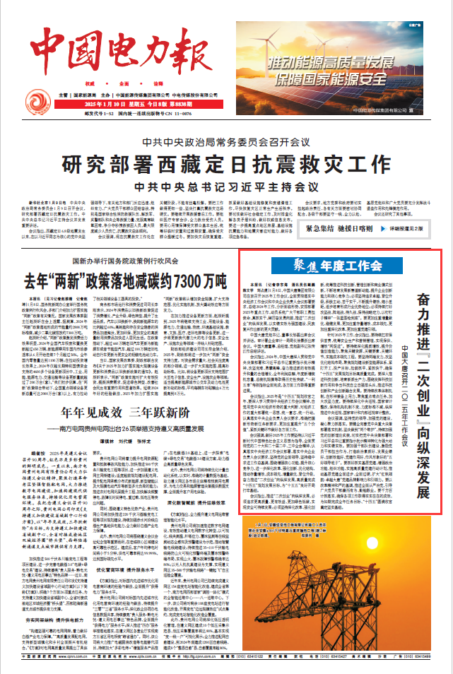 本报讯(记者 李东海 通讯员 伍鲲鹏 陈文学 刘占虎)1月8日,中国大唐集团有限公司在京召开 2025年工作会议,全面贯彻落实中央经济工作会议和中央企业负责人会议部署要求,总结2024年工作,分析面临形势,安排部署2025年重点工作,动员系统广大干部职工勇担使命、真抓实干,踔厉奋发勇向前,推进“二次创业”向纵深发展,以实绩实效为强国建设、民族复兴作出新的更大贡献。
